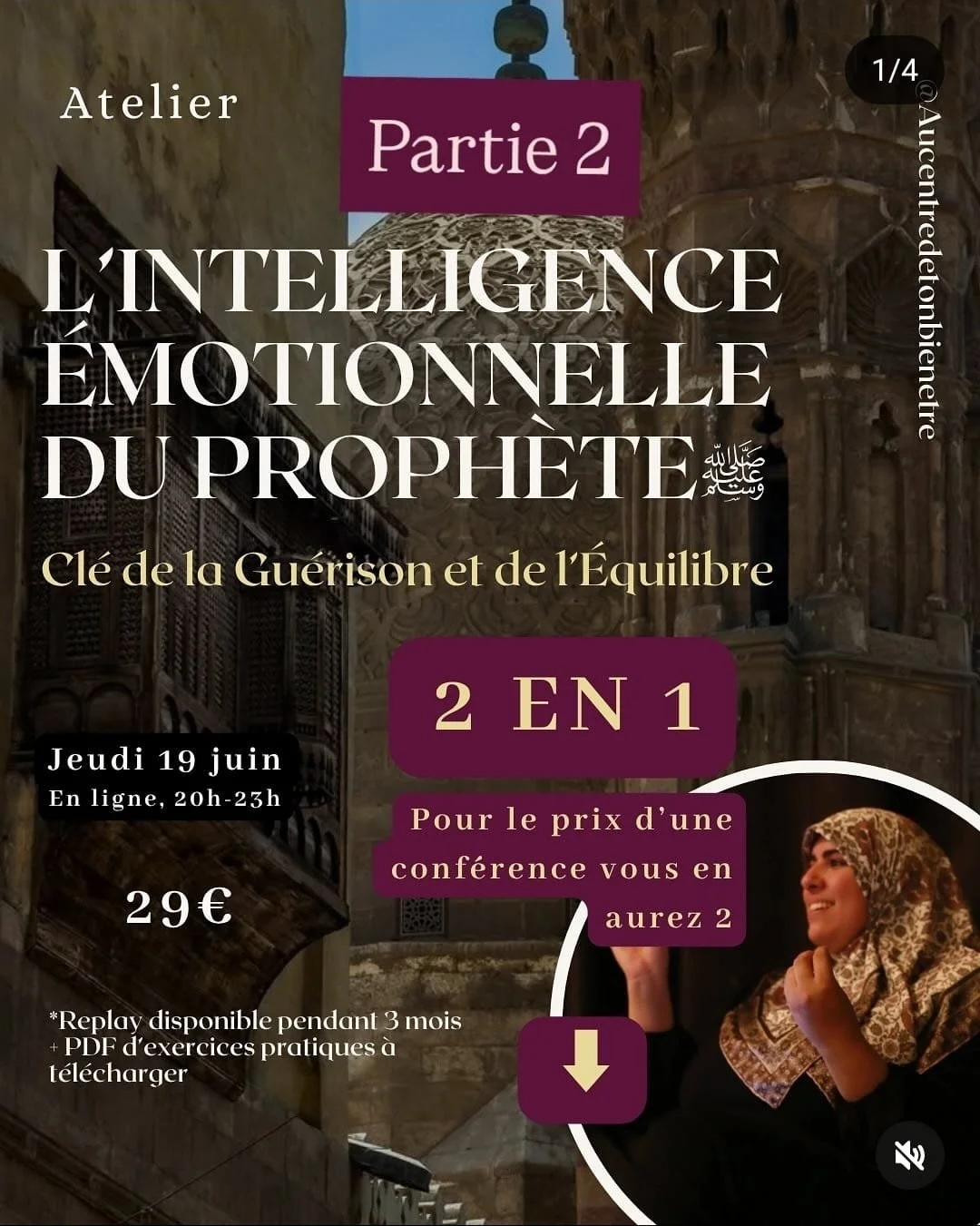 À travers cet atelier unique, je t’emmène dans un voyage psycho-spirituel puissant, à la croisée de la psychologie islamique, de l’intelligence émotionnelle et de la Sunna du Prophète Muhammad ﷺ.